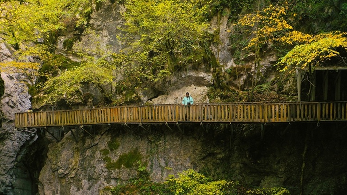 Dev kayalıklar arasından ahşap platformu kullanan ziyaretçiler, güz renklerine bürünen kanyonun tüm güzelliklerini görebiliyor.